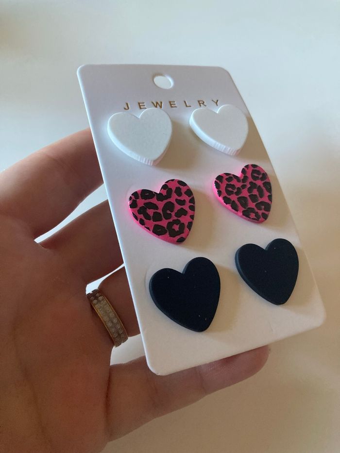 Lot de 3 boucles d’oreilles NEUVES avec étiquette forme de cœurs couleurs - photo numéro 4