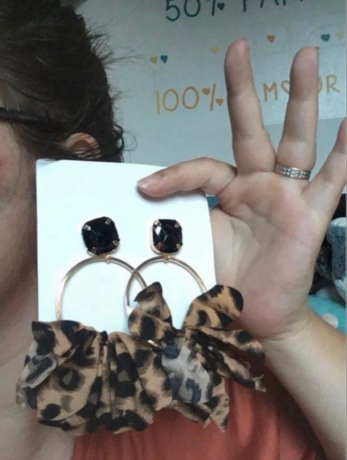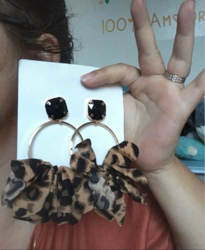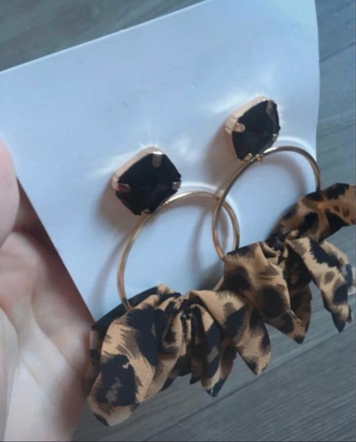 DRESSING PROPOSANT RÉDUCTIONS 💶😀 Créoles / Boucles d’oreilles pour femme, à froufrous (comme des pétales de fleurs). Pour oreilles percées. Couleurs : Marron et noir : Motifs léopard DIMENSIONS : 11 cms de hauteur 5 cms de largeur ✨NEUVES avec étiquette. Jamais portées.✨ Prix : 3€65 Je dépose DANS LA MESURE DU POSSIBLE les colis 📦 le lendemain du paiement. 😉 MAIS SI CEST UN ENVOI URGENT, MERCI DE ME LE PRÉCISER ☺️. N’hésitez pas à jeter un coup d’👀 à mes évaluations. 🙂