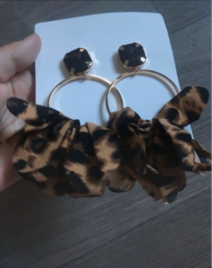 Créoles / Boucles d’oreilles NEUVES pour femme à froufrous couleurs marron et noir léopard - photo numéro 8