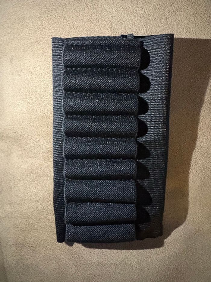 Cartouchière de crosse en néoprène noir, souple et antidérapante, facile à enfiler sur la plupart des crosses de fusil ou carabine. Elle permet de garder les cartouches à portée de main sans gêner l’épaulement. Compatible avec plusieurs calibres courants (.308, .223, 5.56, 30-06, 7.62×51). Très bon état, élastiques bien fermes. Vendue vide, sans munitions. MC cartouchière crosse néoprène, porte cartouches fusil, accessoire chasse tir, étui cartouches élastique, crosse carabine, rangement munitions vide