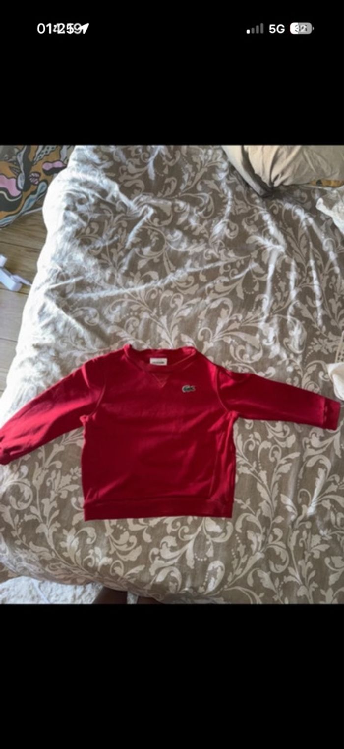 Sweat Lacoste rouge 4 ans bon état pas de tache