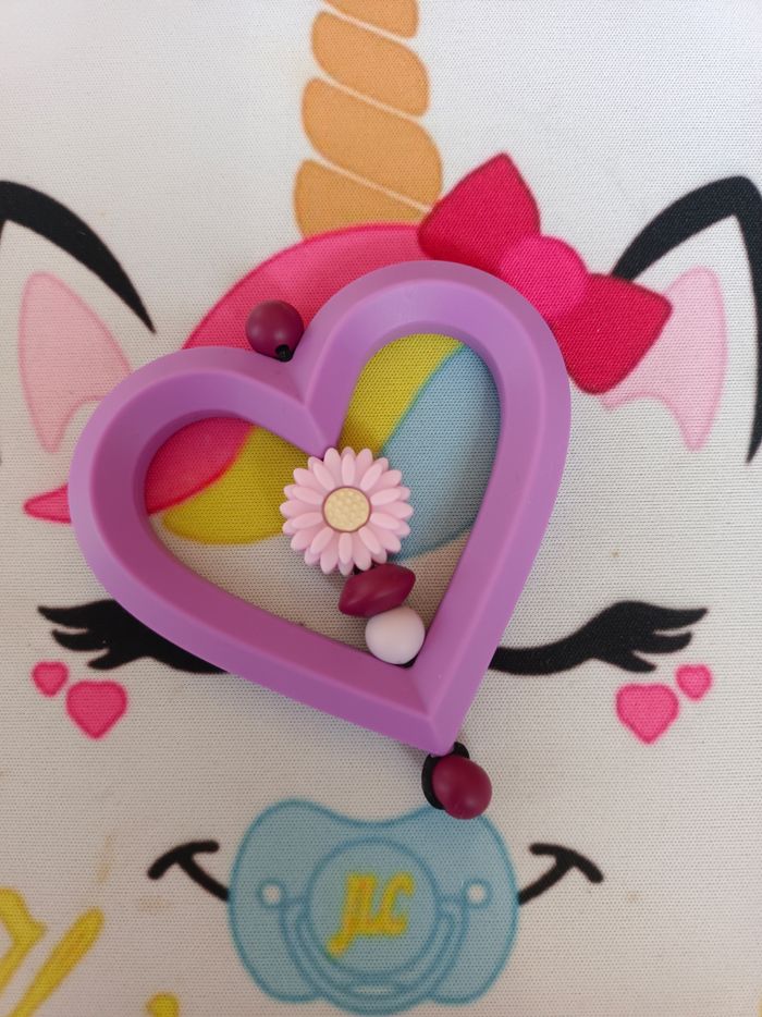 Ce Ring dentaire Marguerite soulage les gencives de bébé tout en douceur avec notre anneau de dentition. Conçu en silicone alimentaire sans BPA, il est totalement sûr pour bébé. Sa forme ronde ou coeur et légère facilite la prise en main, tandis que ses perles colorées et sa perle fabtaisie centrale apportent une touche de tendresse. ✔️ 100% silicone alimentaire, sans substances nocives ✔️ Soulage efficacement les poussées dentaires ✔️ Facile à attraper par les petites mains ✔️ Design coloré et ludique Un indispensable pour accompagner bébé dans ses premiers mois ✨ Envoyez-moi un message afin de créer main dans la main votre accessoire idéal. Une photo du prototype de celui-ci vous est envoyé pour validation avant envoi