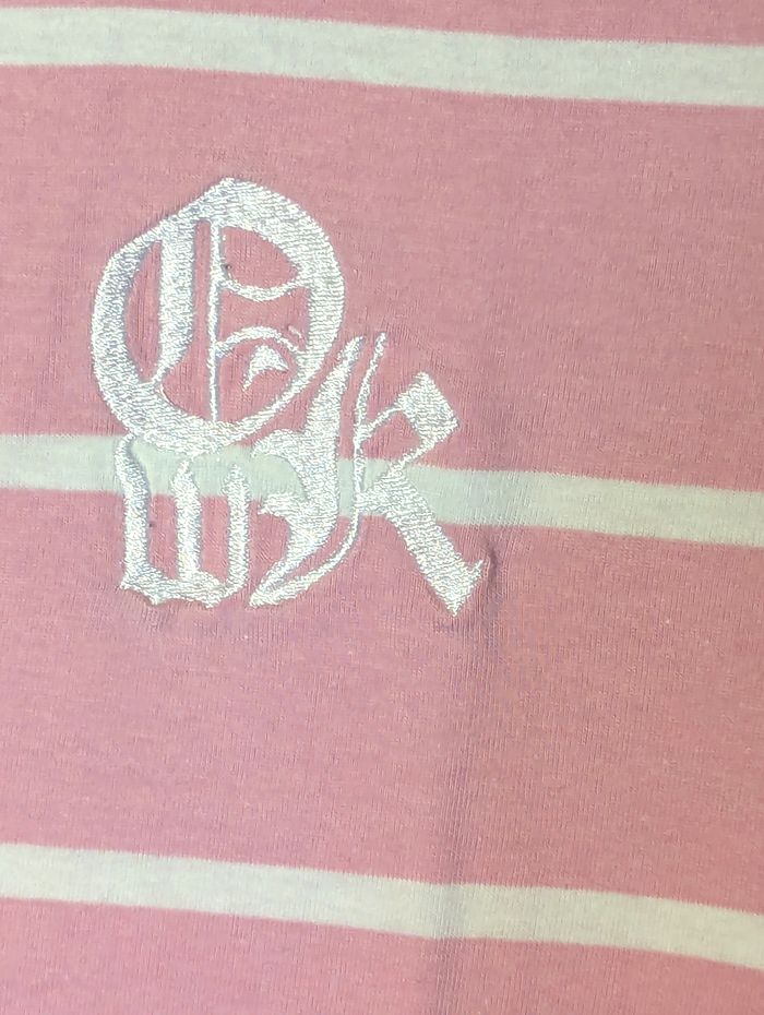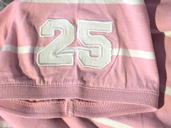 Polo OWK Rose Rayures Horizontales Blanches Nombre 25 Manche Vêtement Tendance Mode Hommes - photo numéro 2