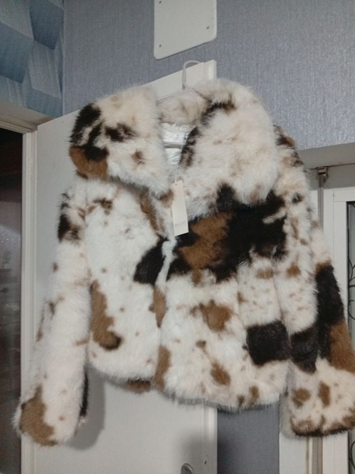 Très veste en fausse fourrure douce et épaisse , idéal pour l'automne et hiver Motif tacheté dans les tons ecru,noir et marron très tendance Coupe courte avec col large qui tient bien chaude et épaisse et apporte un style chic et moderne Taille M/L