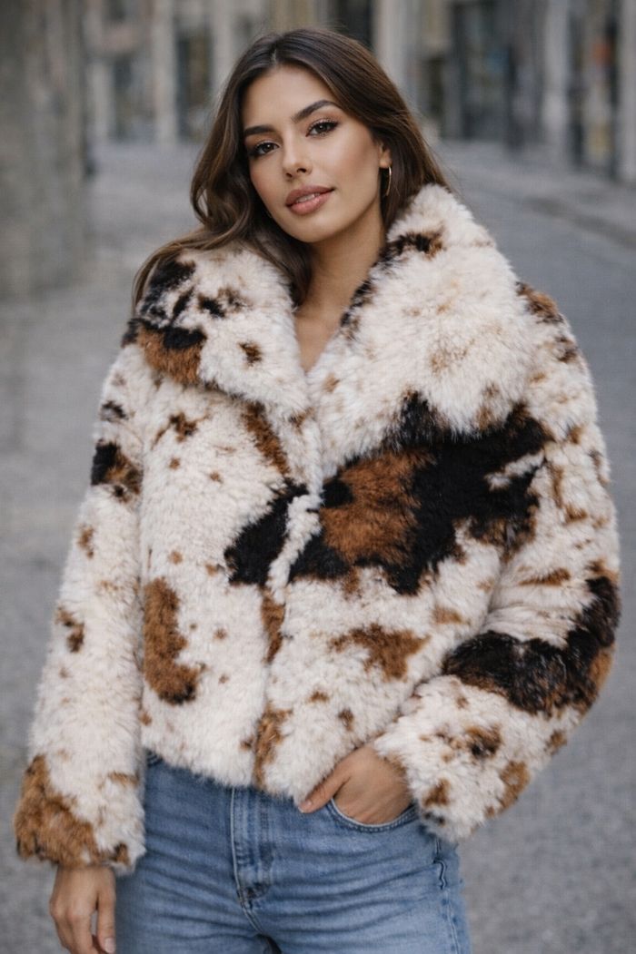 Veste courte en fausse fourrure - motif tacheté /effet cow - photo numéro 1