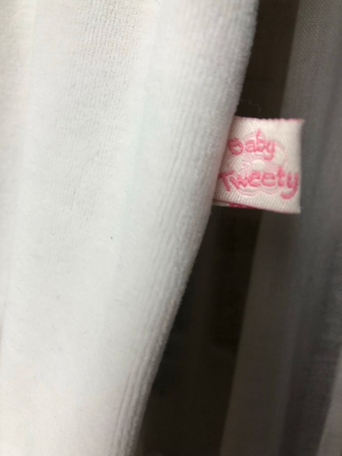 Pyjama velours blanc de très belle qualité Brodé Titi rose Taille 3 mois Plus d’étiquette Tweety Bon état car marque de stylo au dos d’une manche visible sur les photos