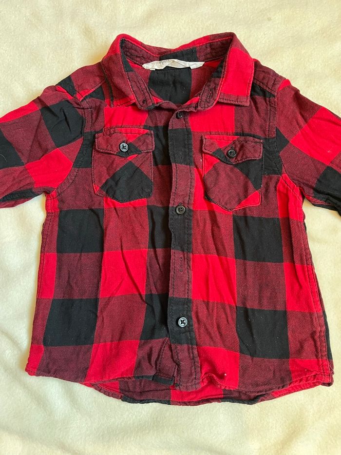vends cette chemise manches longues à carreaux noir et rouge bordeaux marque H&M taille un an et demi à deux ans longueur 39 cm Demi largeur aux aisselles 28 cm 100% coton 2,5 euros Mes autres annonces de vêtement pour garçons de 2 ans #lma42garcon2