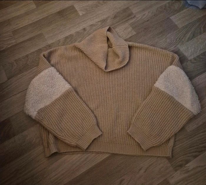 Pull en maille col benitier 11/12 ans Pull assez court se porte ainsi, il a une autre matiere sur les manches Couleur beige tbe Peut mis