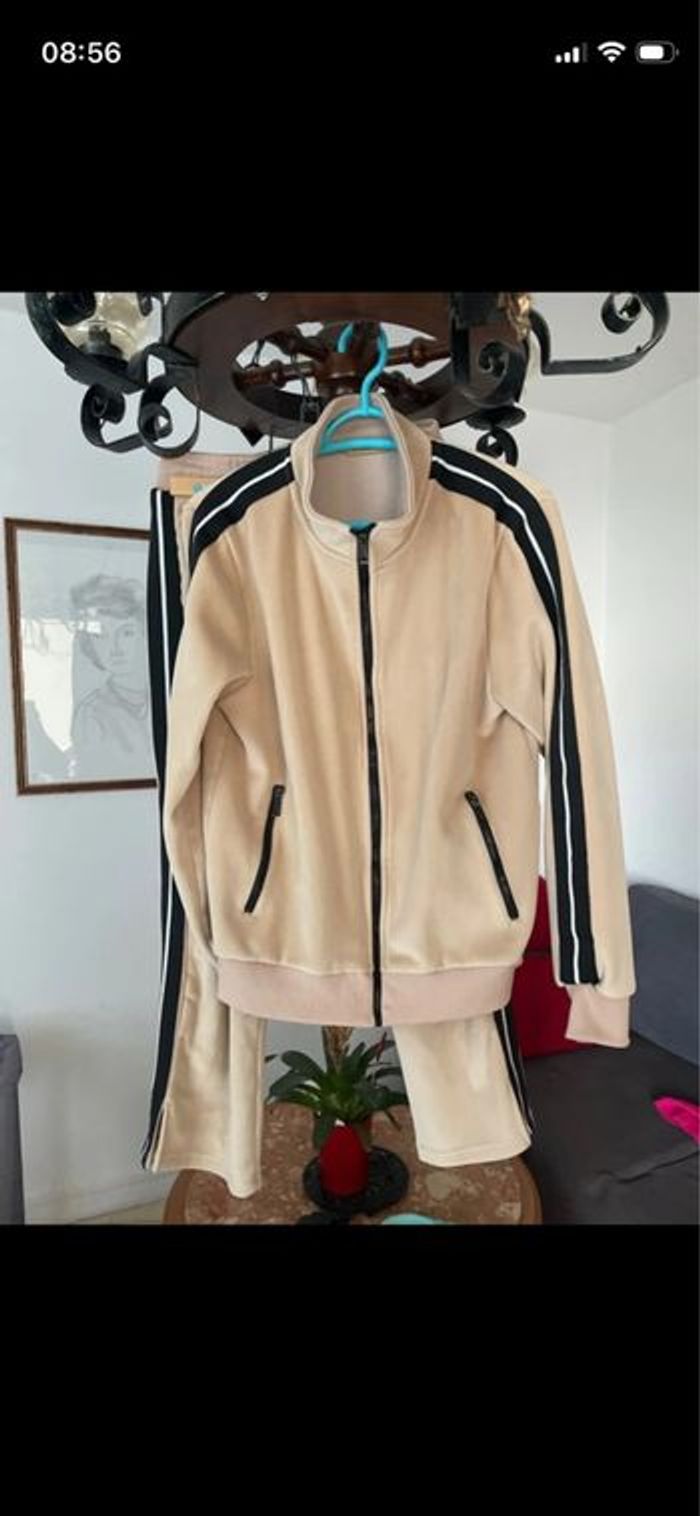 Tour de taille 38cm pour une longueur de 92cm, pour la veste aisselle à aisselle 54cm pour une longueur de 63cm. Défaut sur une jambe du pantalon vraiment minime voir photo