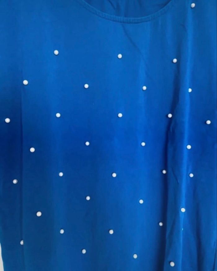 💎 Haut bleu électrique à détails perles - État impeccable Je vends ce magnifique haut bleu cobalt / roi qui apporte immédiatement du peps à une tenue. Il se distingue par ses petites perles nacrées sur le devant et ses manches bouffantes (effet froncé aux épaules) pour une silhouette très féminine. Détails mode : Col rond, manches mi-longues structurées et petite ouverture goutte d'eau avec nœud à l'arrière. Style : Parfait pour une tenue de bureau avec un pantalon noir, ou plus décontracté avec un jean blanc. Taille : L - 40 Marque : Lady blush État : Très bon état. Les perles sont bien fixées.