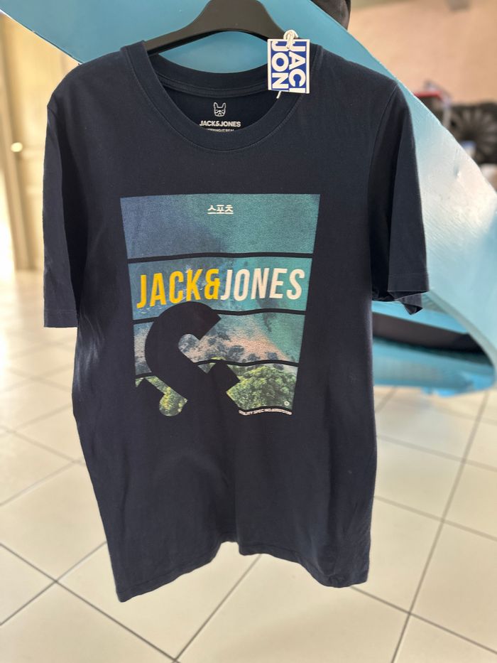 Tee-shirt bleu marine avec impression devant taille 16 ans Jack and Jones NEUF - photo numéro 1