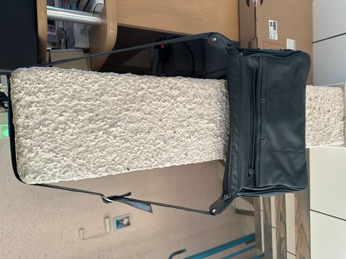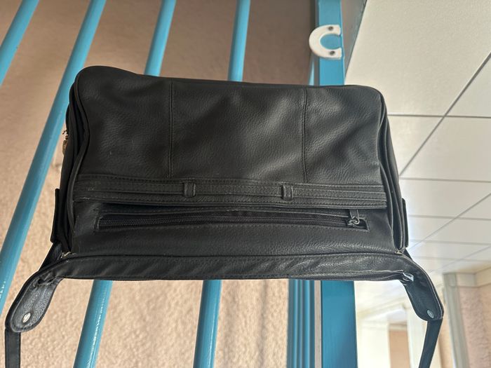 sac bandoulière noir vintage D'occasion avec quelques petites marques d'usures discrètes voir photos. 3 compartiments + 1 petite pochette zippée intérieur +1 pochette zippée extérieur + 1 pochette fermée par boutons pressions. mesures : dimensions à plat: hauteur : 21cm sans compter la poignée/largeur :31cm/fond :7 cm (au bas).