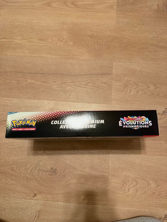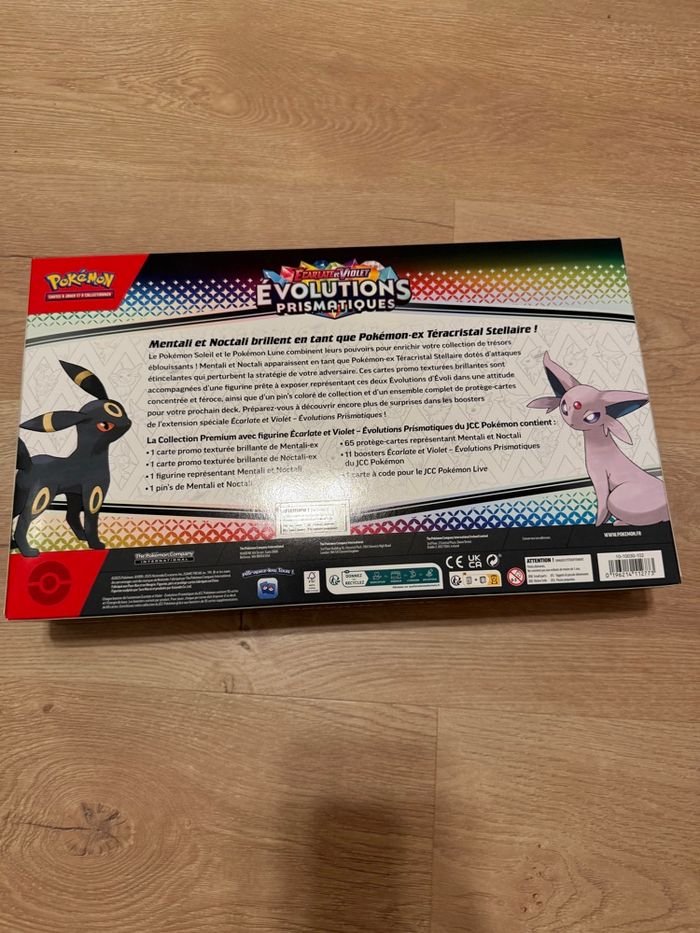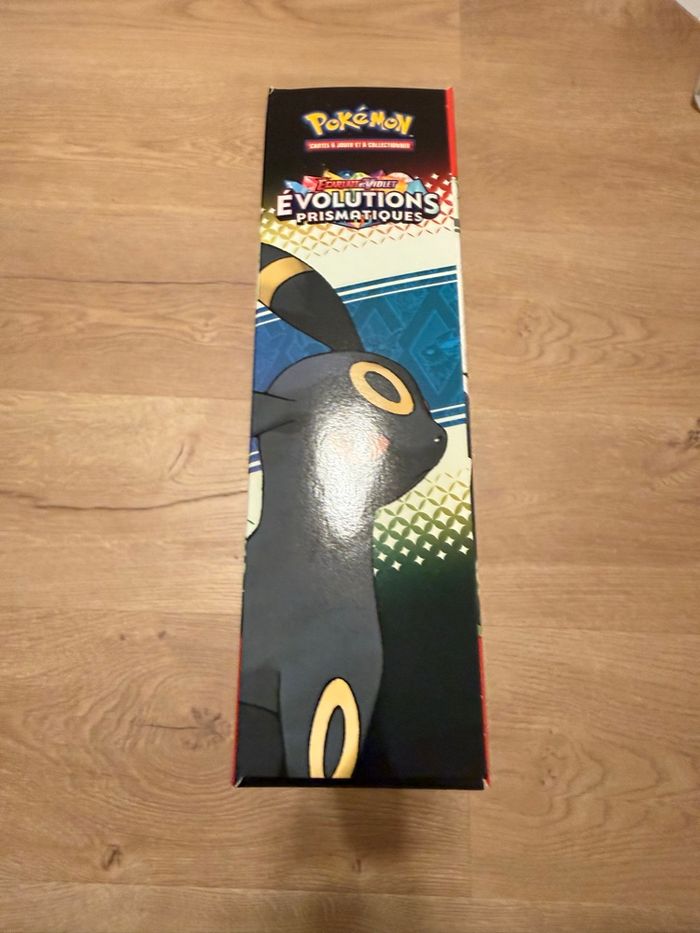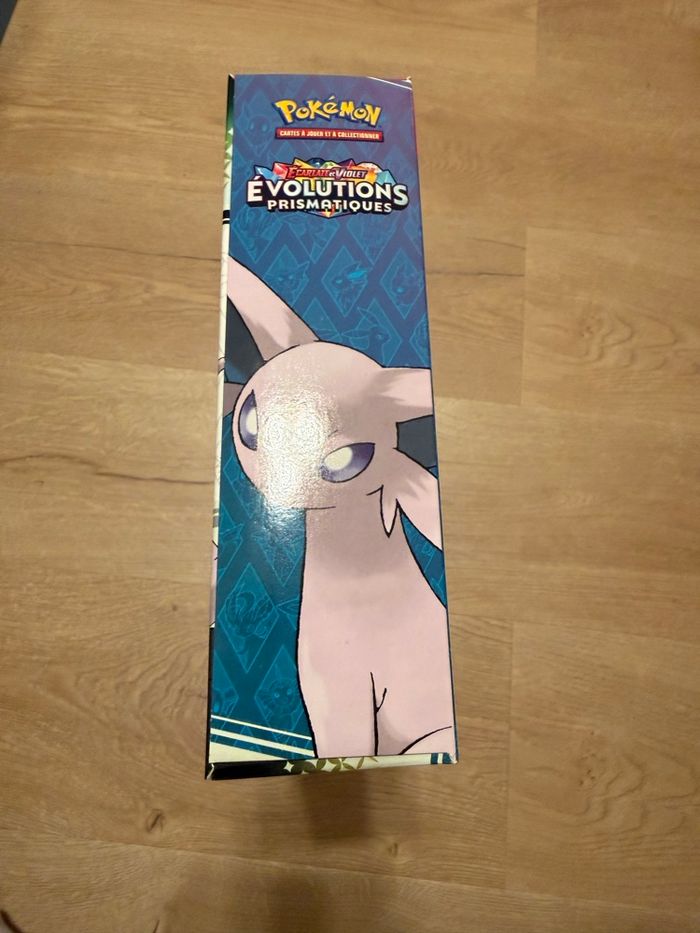 Coffret figurines Évolution prismatique EV8.5 Neuf scellé français Contient 11 boosters + sleeve + figurines + pins + promo État vu en photo