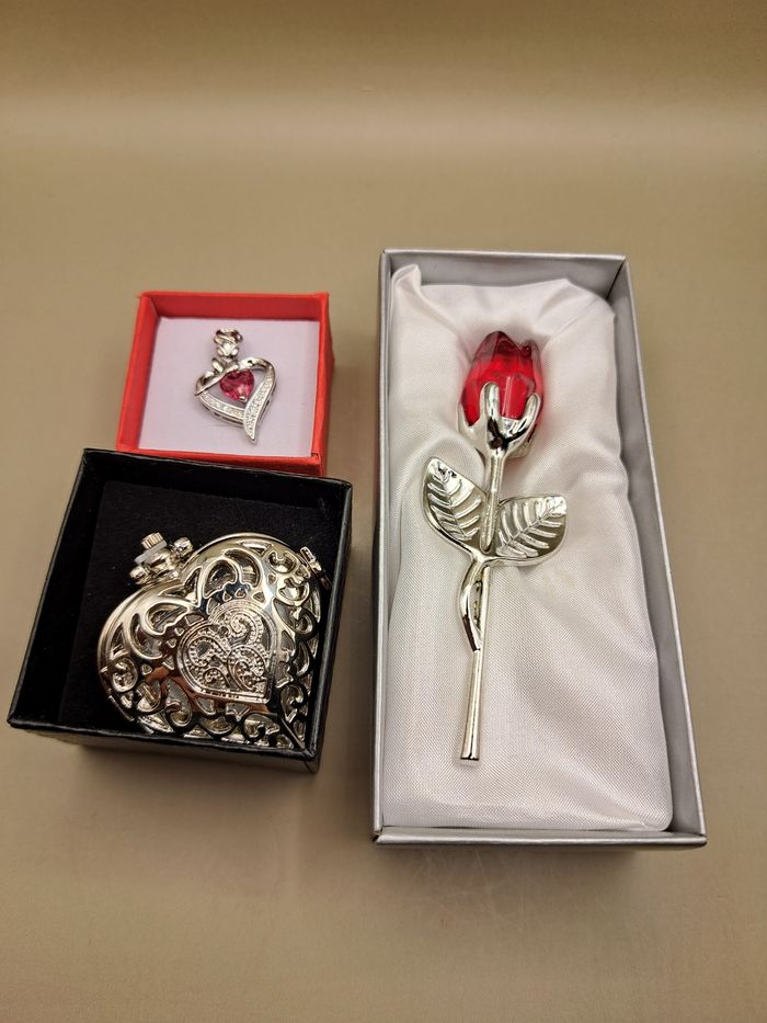 Lot Saint Valentin montre et pendentif Cœur et rose argentée vendu avec coffrets - photo numéro 9