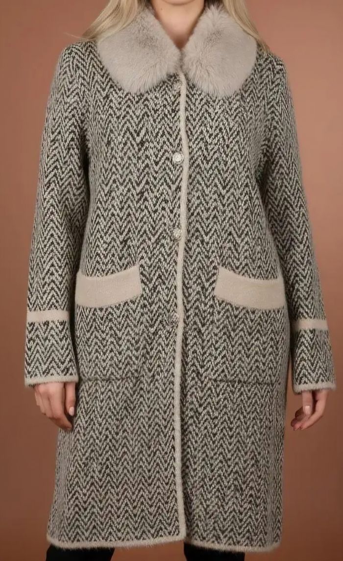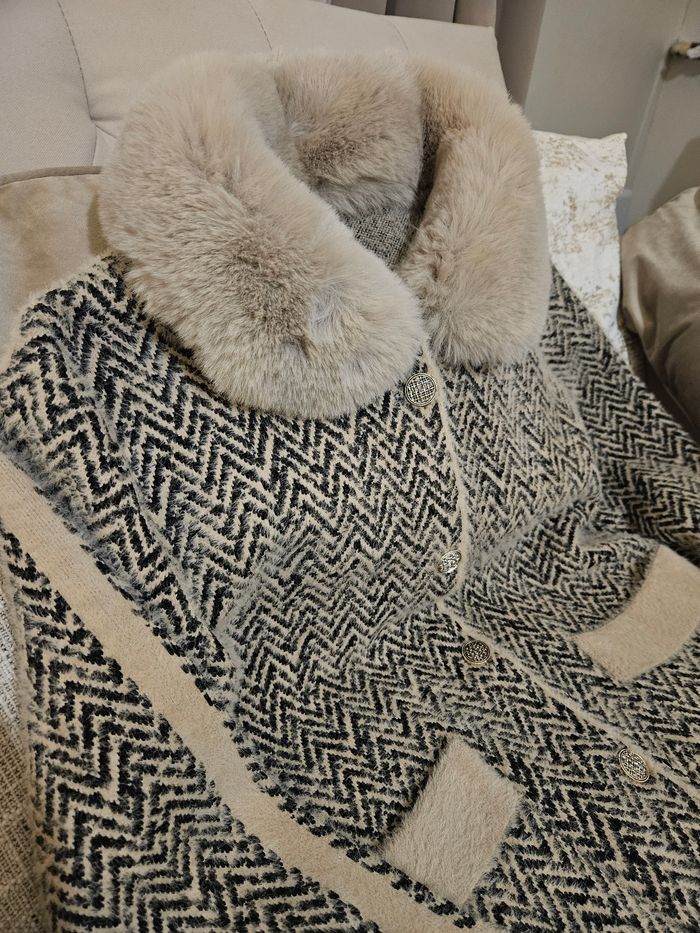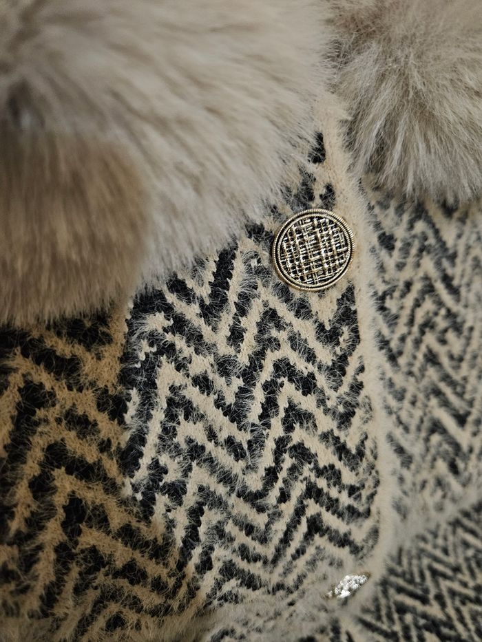 Beau manteau tout doux col fausse fourrure avec bouton doré