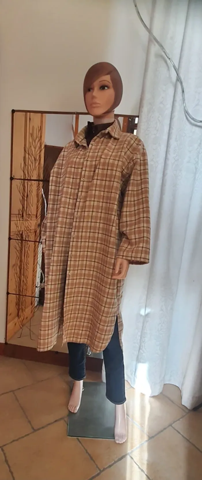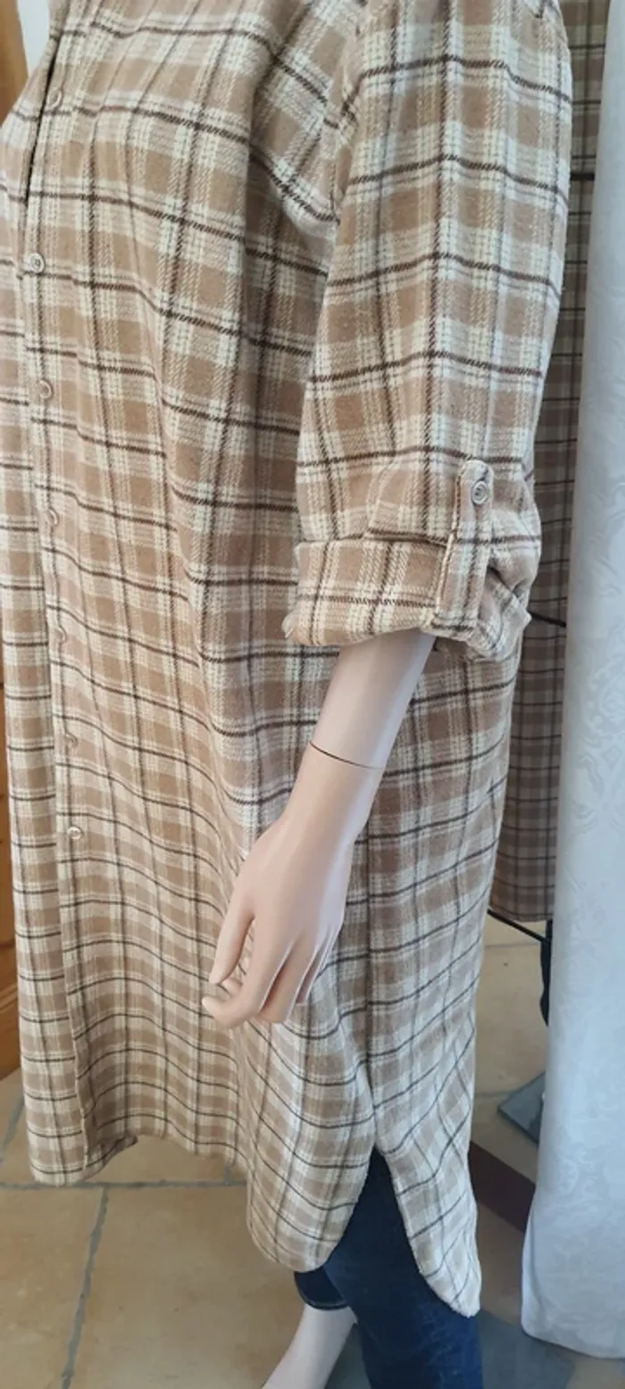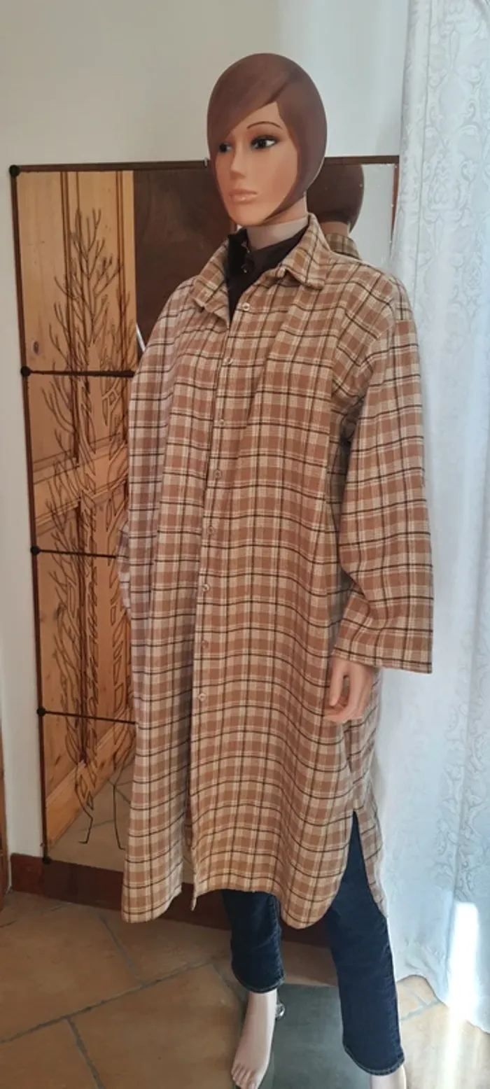 Blouse longue #New Collection Chemise ou surchemise, taille XXL ou + Manche longue, se porte large 70% coton, 30% polyester Carreaux, boutons, fendu, tissus épais Dimensions à plat: épaule 54 cm., sous aisselle 66 cm. Hauteur 122 cm.