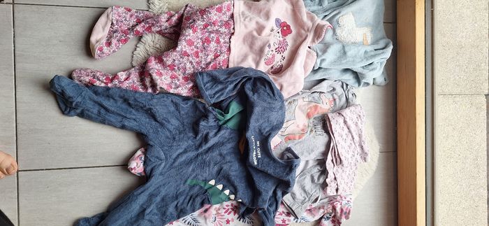 Gros lot vêtements 12 mois - fille - marques diverses (obaibi, dpam, kiabi, c&à, les petits cailloux, orchestra, creeks, etc.) 48 articles : 17 bodies 3 robes 1 jupe à bretelles 1 manteau 3 pyjamas velours 2 pyjamas plus légers mais manches longues 4 gilets 8 pantalons 1 haut manches longues 1 sweatshirt 3 paires de chaussettes Quelques bodies tachés mais bon état général, aucun trou Les vêtements seront relavés avant envoi mais maison avec chats Maison non fumeur Possibilité de remise en main propre à Villeurbanne
