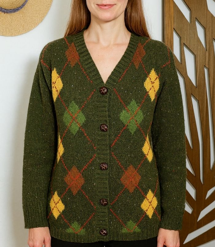 Cardigan jacquard vert taille L - Vintage - photo numéro 1