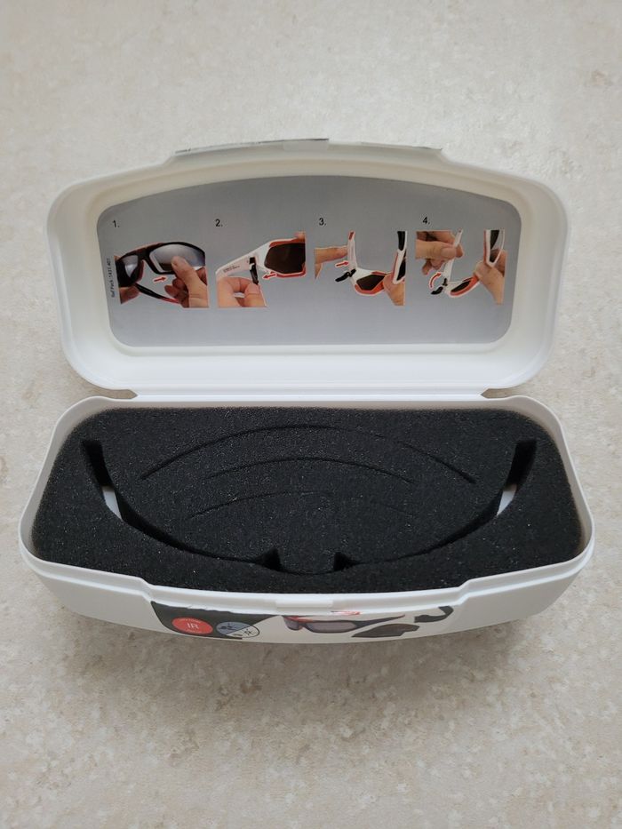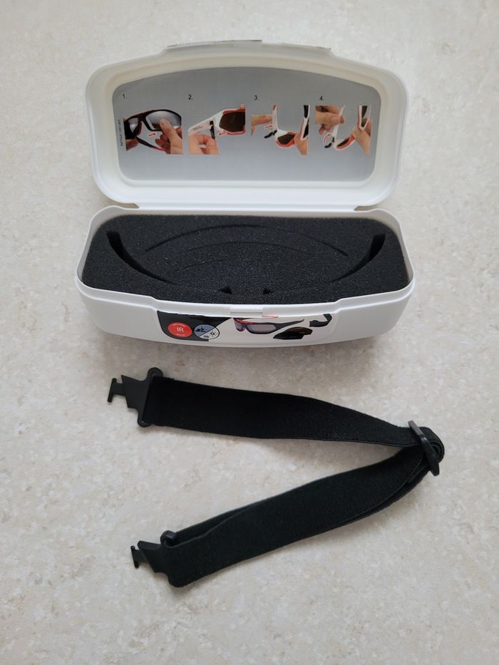 Boîte de rangement pour lunettes de ski Contient : - les protections mousse - la sangle de maintien des lunettes. Neuve n'a jamais été utilisée /!\ Il n'y a plus les lunettes