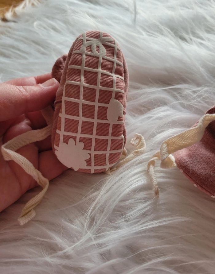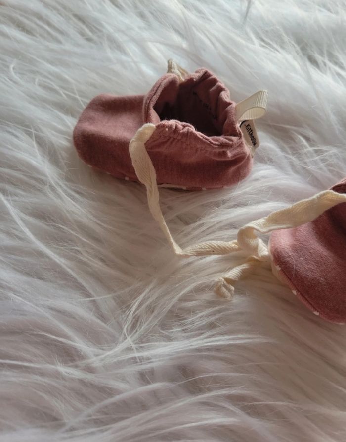 Chaussons couleur bordeaux Marque Kitchoun acheté a Kiabi Taille 3-6mois Juste lavé jamais porté