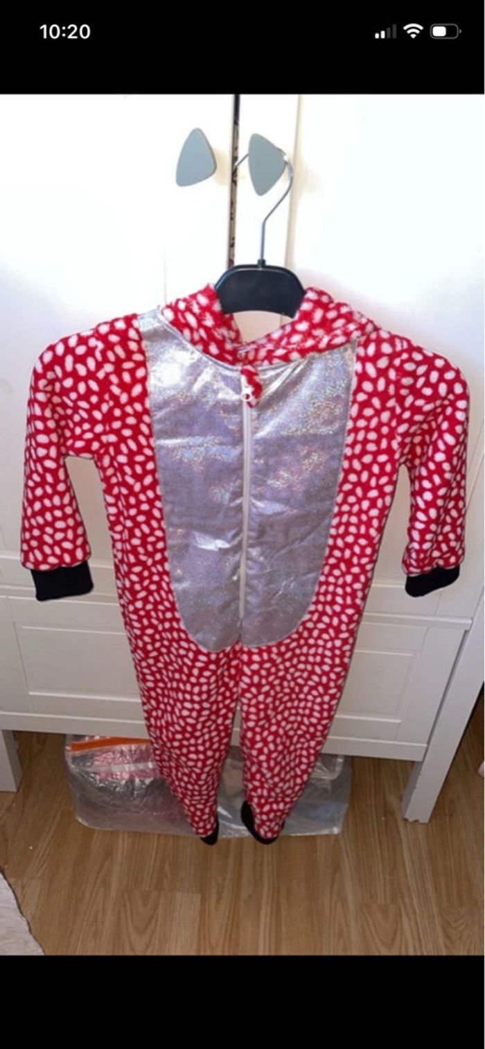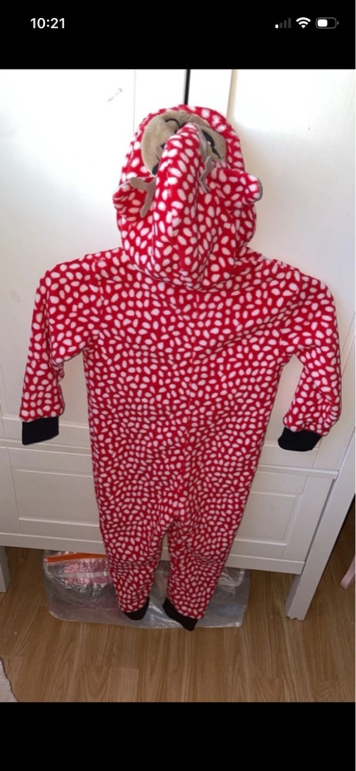 Pyjama pilou pilou, motif cerf, couleur rouge et argent, avec fermeture, neuve, taille 4 ans