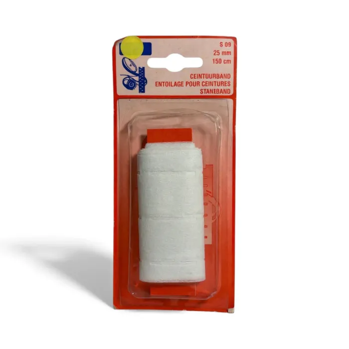 Idéal pour la confection et le renfort des ceintures, cet entoilage offre solidité et maintien à vos créations. Avec une largeur de 25 mm et une longueur de 150 cm, il est pratique pour tous vos projets de couture et bricolage textile. Caractéristiques : • Largeur : 25 mm • Longueur : 150 cm • Type : entoilage pour ceinture • Idéal pour : couture, confection de ceintures, bricolage textile