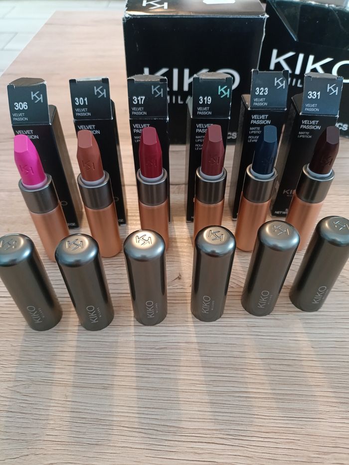 Rouges à lèvres KIKO velvet passion mat N°301/306/317/319/323/331 6€ l'unité ou 15 les 3 rouges à lèvres Texture onctueuse, ultra-fondante pour un effet mat intense. Effet velours, mate et sophistiqué. Couleur immédiate et longue tenue. Tube moderne et magnétique pour une conservation optimale. Donnez-moi vos numéros préférés 😉