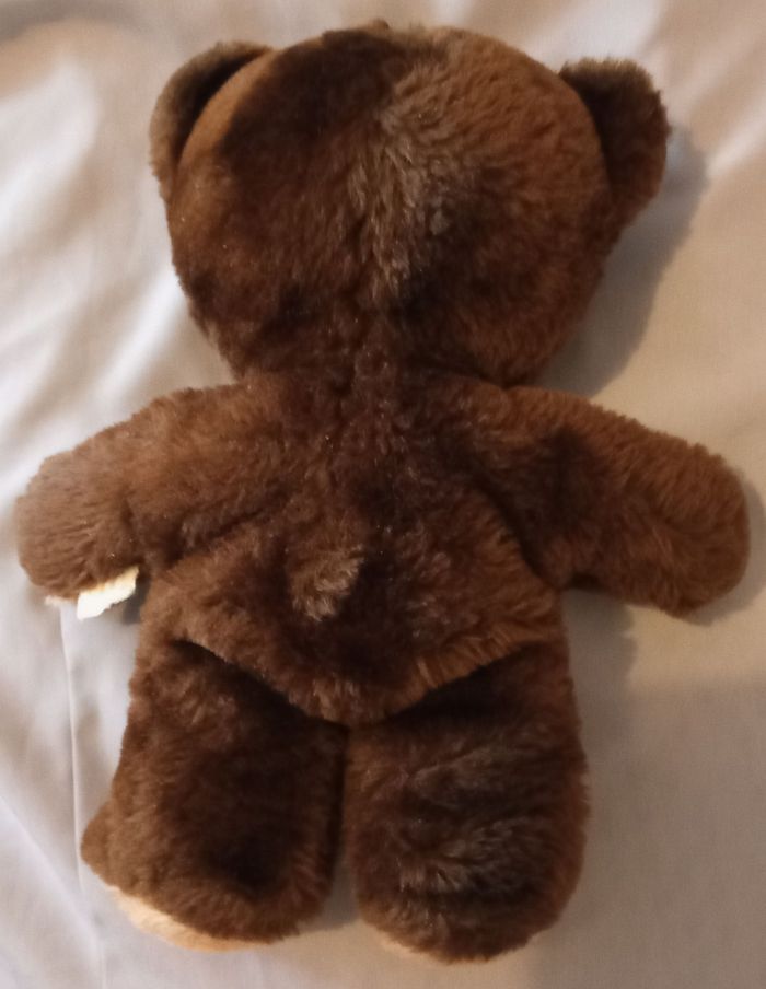 doudou peluche ours ourson de la marque Boulgom bicolore 26cm +/- marron foncé brun beige d'occasion  yeux durs noir nez plastique étiquette usée  - photo numéro 2