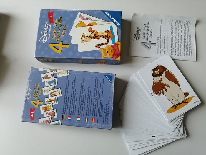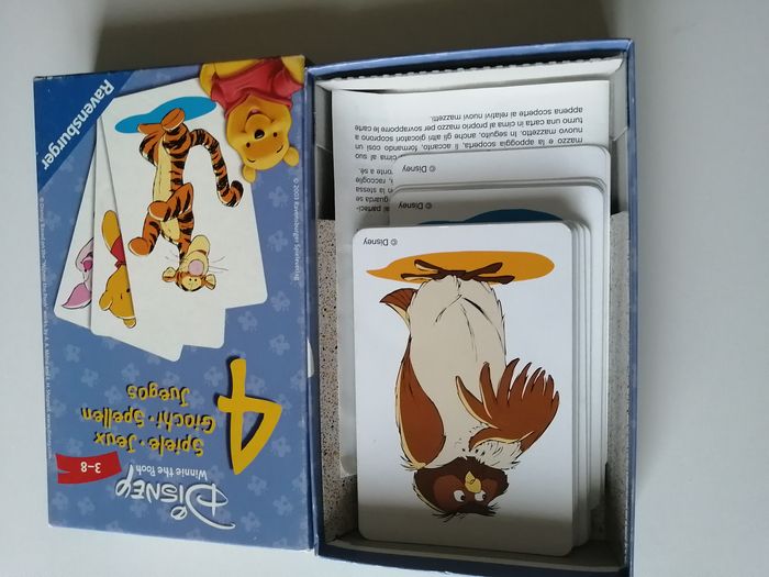 winnie l'ourson winnie the pooh disney 4 jeux en 1 schnipp-schnapp, pouilleux, jeu des familles et chasse au paires règle du jeu multilangues ravensburger dès 3 ans 2003 grandes cartes de 12 cm boîte présentant traces d'usures et du temps d'autres articles winnie à retrouver sur mon dressing