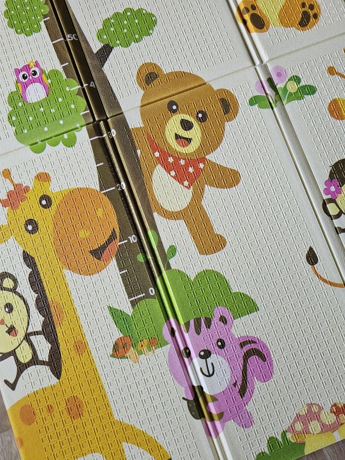 Mousse épaisse et moelleuse offrant un excellent confort et une bonne protection contre le sol froid. Motifs doux et ludiques, parfaitement adaptés à l’univers de bébé. Facile à plier, léger et pratique à transporter ou à ranger. Convient dès la naissance. 📏 Dimensions : 180 cm x 150 cm x 1 cm ✔️ réversible ✔️ antidérapant ✔️ waterproof ✔️ modulable ✔️ lavable D’autres motifs disponibl