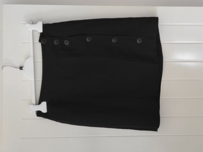"Jolie jupe portefeuille pour femme, élégante et facile à porter, idéale au quotidien comme pour une tenue plus habillée. ✨ Détails : Taille indiquée : 40 👉 Taille réelle : correspond plutôt à un petit 38 Fermeture : Ouverture par bouton sur le côté Longueur : 46 cm Taille à plat : 36 cm Couleur : Noir État : Très bon état 👗 Coupe flatteuse, intemporelle et facile à associer (chemise, pull, blazer…)."