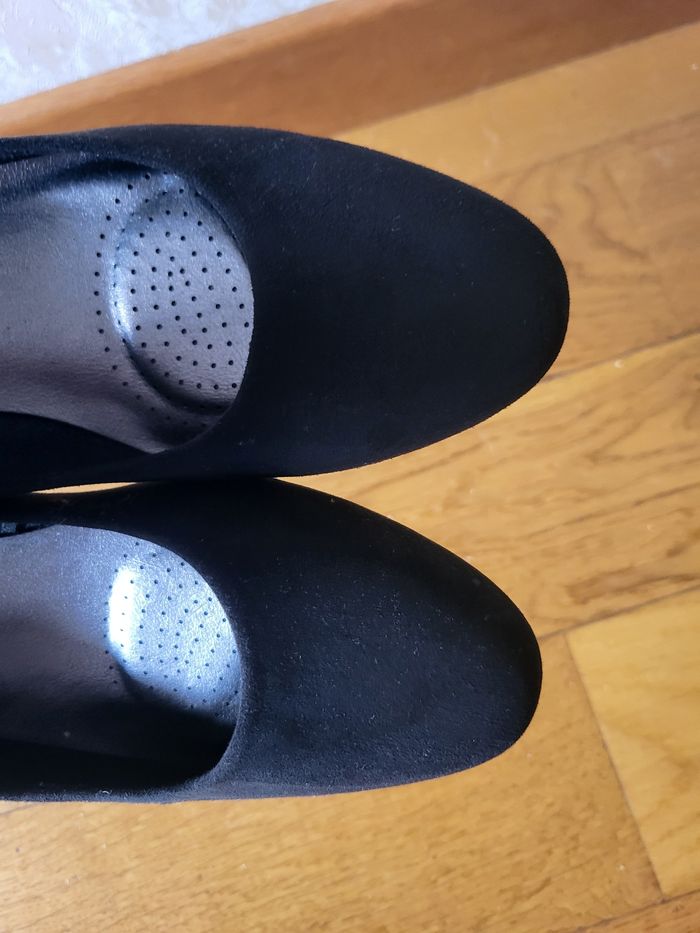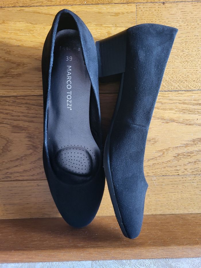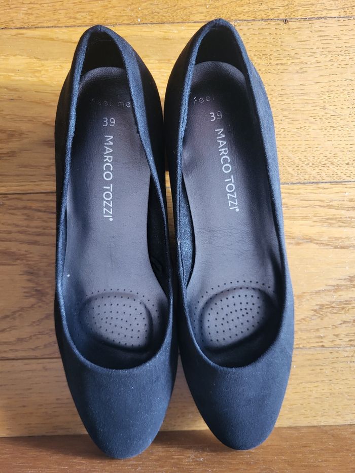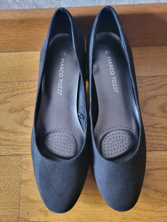 Bonjour, Après un grand tri chez moi, je vous propose ces escarpins à talons très élégants : 👉 Marque : Marco Tozzi 👉 État : Très bon voire neuf car jamais porté 👉 Couleur : Noir 👉 Taille : 39 (taille un peu petit) 👉 Matières : En tissu dedans et intérieur style faux-suède En plastique en dessous 👉 Petit talon ❌️ Je n'ai plus la boîte d'origine, mais les escarpins seront très bien emballés dans une boîte à chaussures en plus du carton pour le colis 📸 Je reste disponible par messages pour plus d'informations et de photos. PRIORITE RMP ET MONDIAL RELAY ℹ️INFORMATIONS ℹ️ ✨️ Protection des chaussures dans une boite avec du papier de soie épais et dans du papier bulles pour ne pas l'abîmer pendant le transport (sauf si enveloppe à bulles) ✨️ Ajout au besoin de papier kraft et mousse pour caler ✨️ Envoi sous 48h après achat (hors week-end) ✨️ Envoi dans un carton recyclé ♻️ ou une pochette à bulles 🤝🏻 Remise en mains propres accepté sur RENNES uniquement 📚 Lots acceptés et permettent d'économiser sur les frais de port ✅️Information mondial relay : Rassurez-vous j'imprime TOUJOURS mon bordereau. Je n'aime pas leur système de sans étiquette