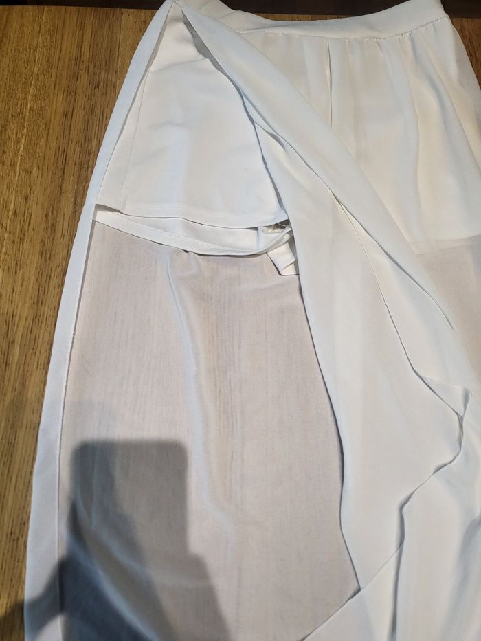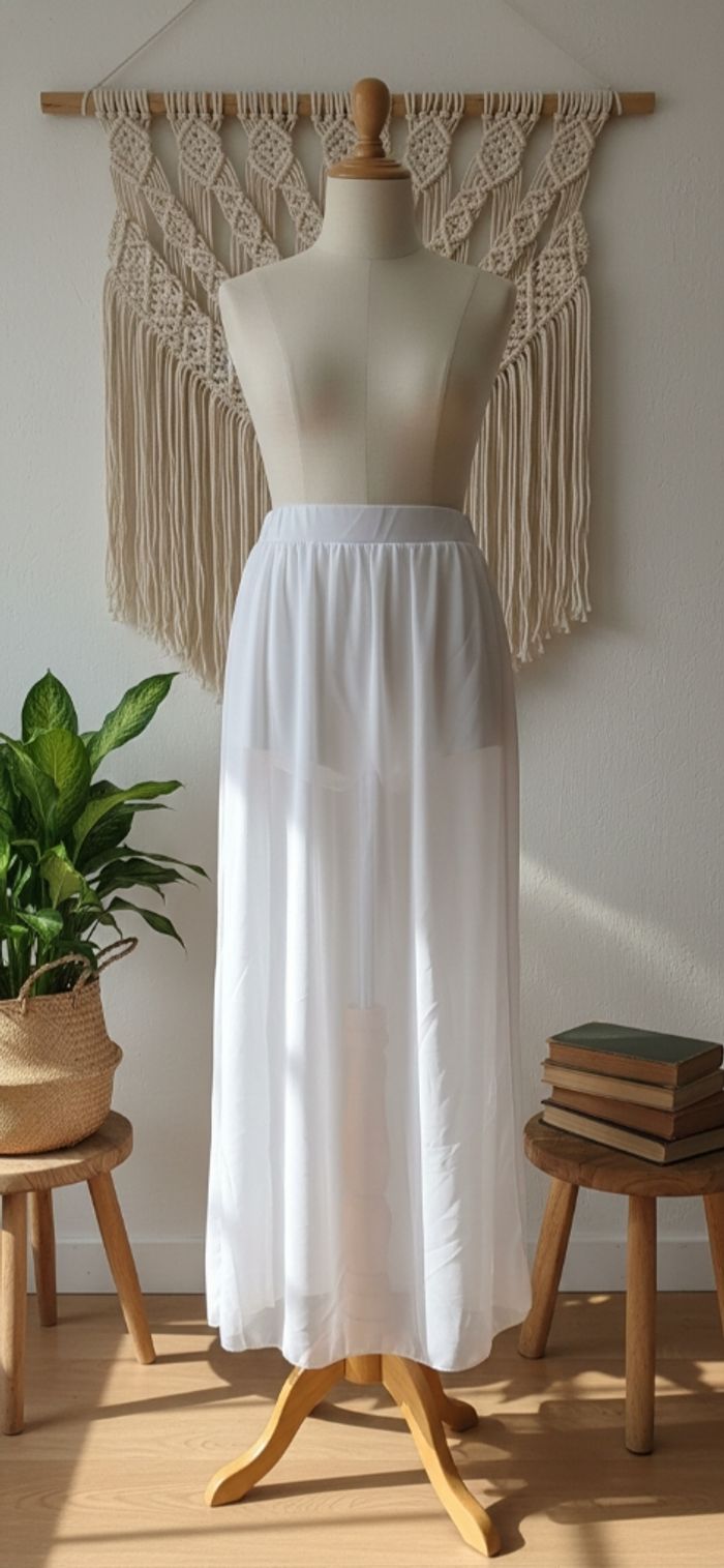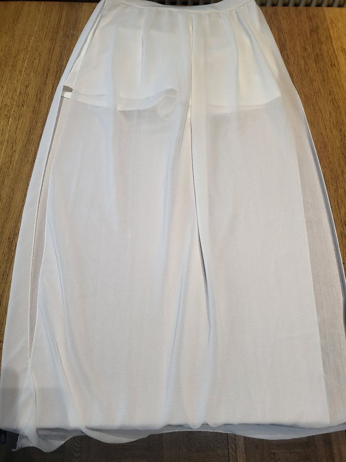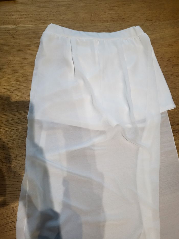 Coup de cœur pour cette magnifique jupe longue blanche, à la fois élégante et audacieuse ! ​Le détail qui change tout : Elle possède un short intégré opaque, ce qui permet de jouer avec la transparence de la mousseline en toute sérénité. ​Style : Coupe fluide et aérienne, parfaite pour un look bohème chic avec des sandales, ou plus sophistiqué avec un body noir et des talons. ​État : comme neuf ​Conseil taille : Taille normalement, élastique à la taille pour plus de confort. Taille Unique ( 34/36)