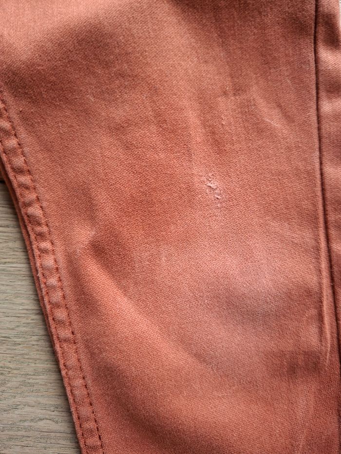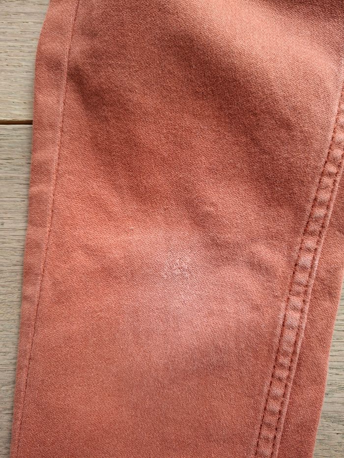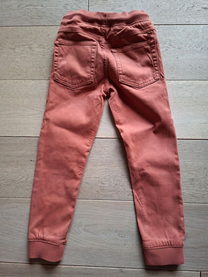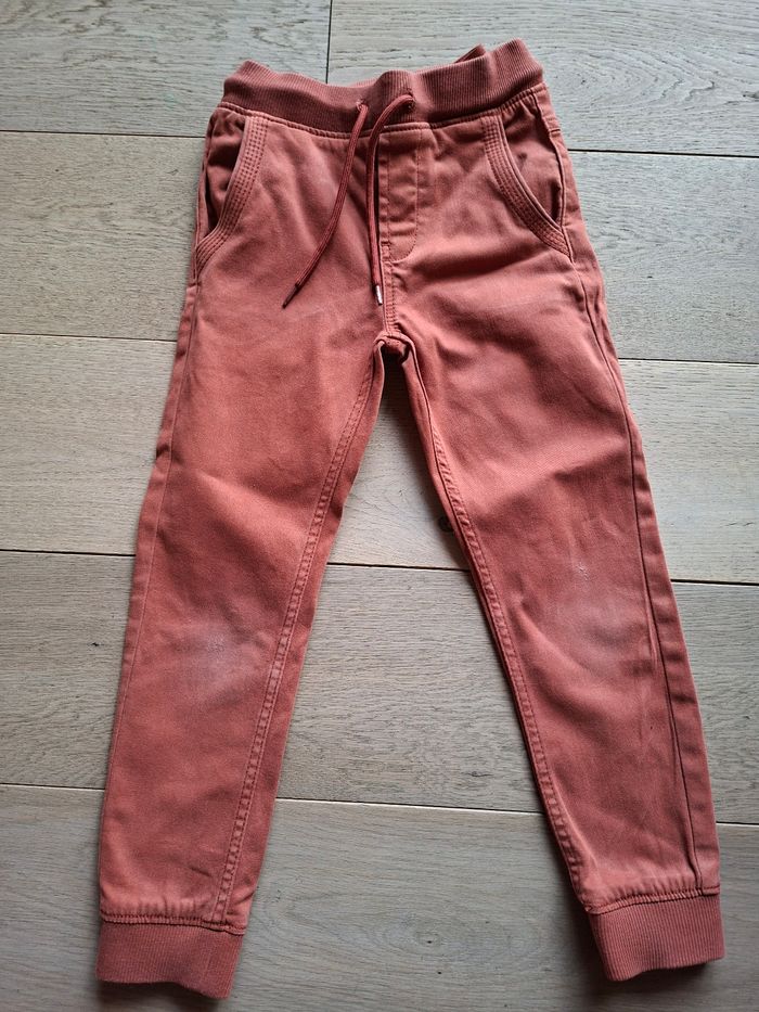 Pantalon Okaïdi coloris rouille. Coupe jogger. Taille 6 ans/116 cm Liens de serrage à la taille + cordons de serrage. Matière 98% coton, 2% élasthanne. Légère usure aux genoux (voir photos).
