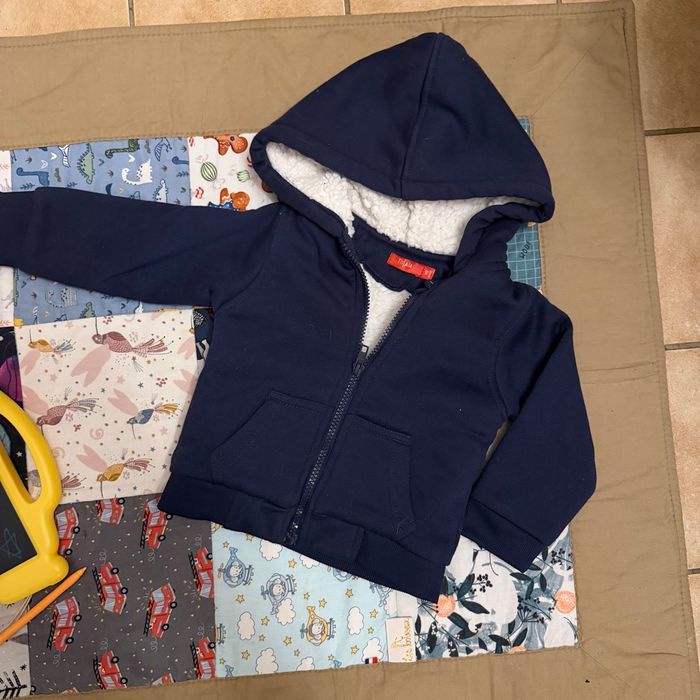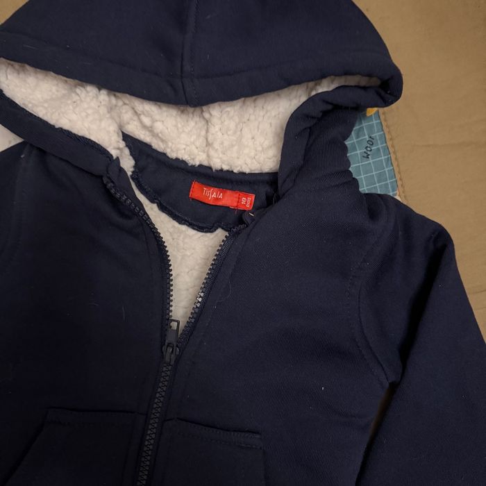 Veste polaire garçon, zippée à capuche Bleue marine Taille 18mois Marque Tissaia Très bon état #vetements18mois #vetementsgarcon #18moisgarcon #tresbonetat #tissaia #vestepolaire #vestegarcon