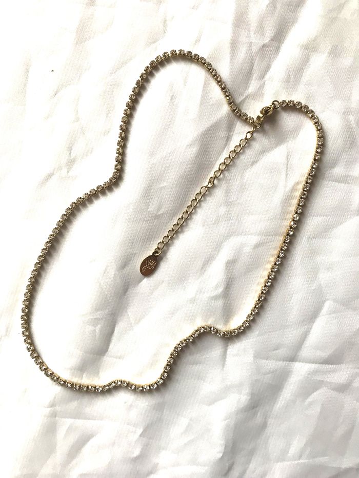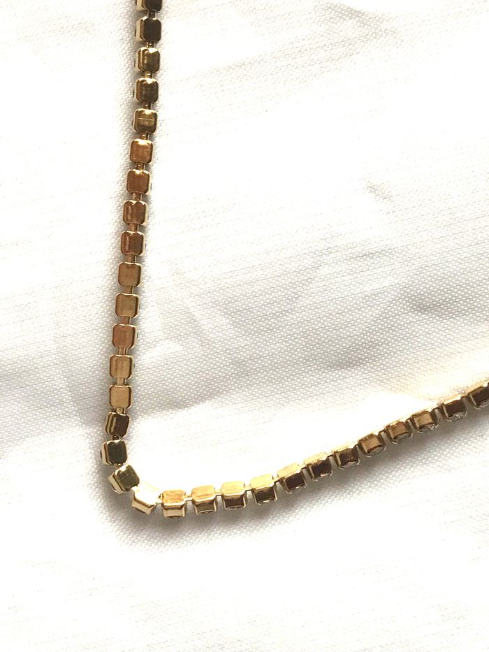Collier Chaîne Eblouissante Pierres Blanches Carrées Zircon Brillant Bijou Doré Fantaisie Femmes - photo numéro 1