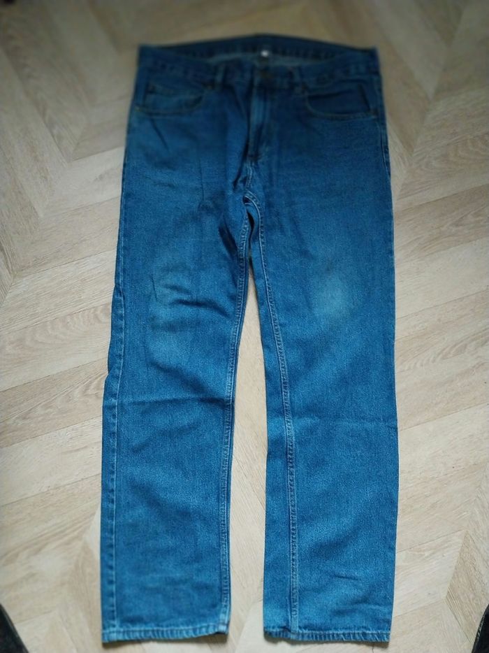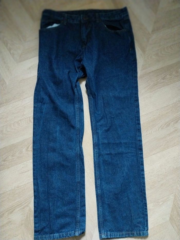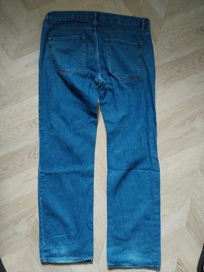 Jeans droits Les 2 plus sont un peu tâchés et un est usé entre les jambes au dos ( voir photos) Le plus foncé est quasi neuf