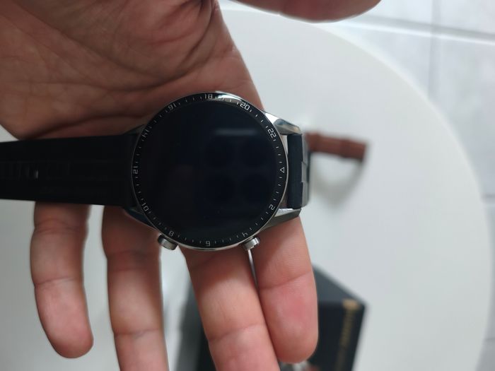 Montre Huawei Watch GT 2 - 46 mm en excellent état. Vendu avec socle, boîte, bracelet cuir. Peu d'utilisation, batterie sans défaut en consequence.