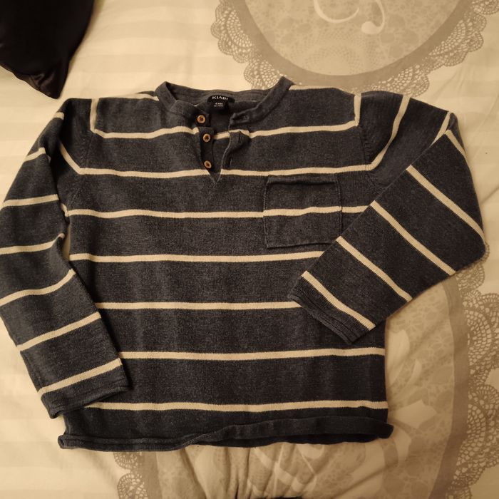1 pull rayé et 1 gilet. Taille 6 ans de chez Kiabi. Mais taille petit donc plus 5 ans.