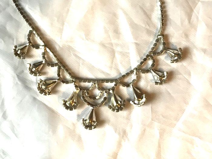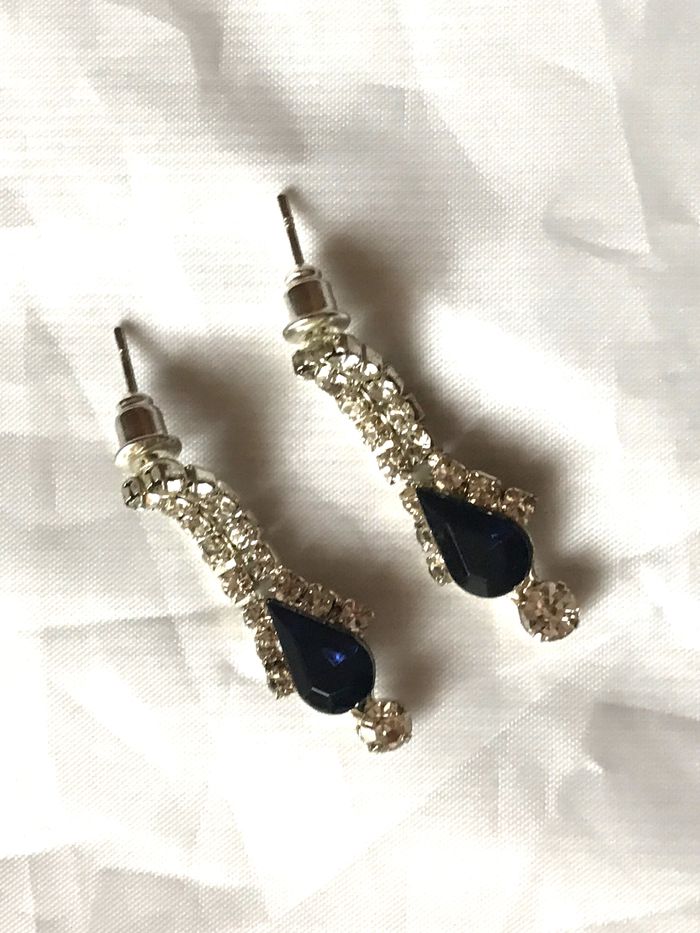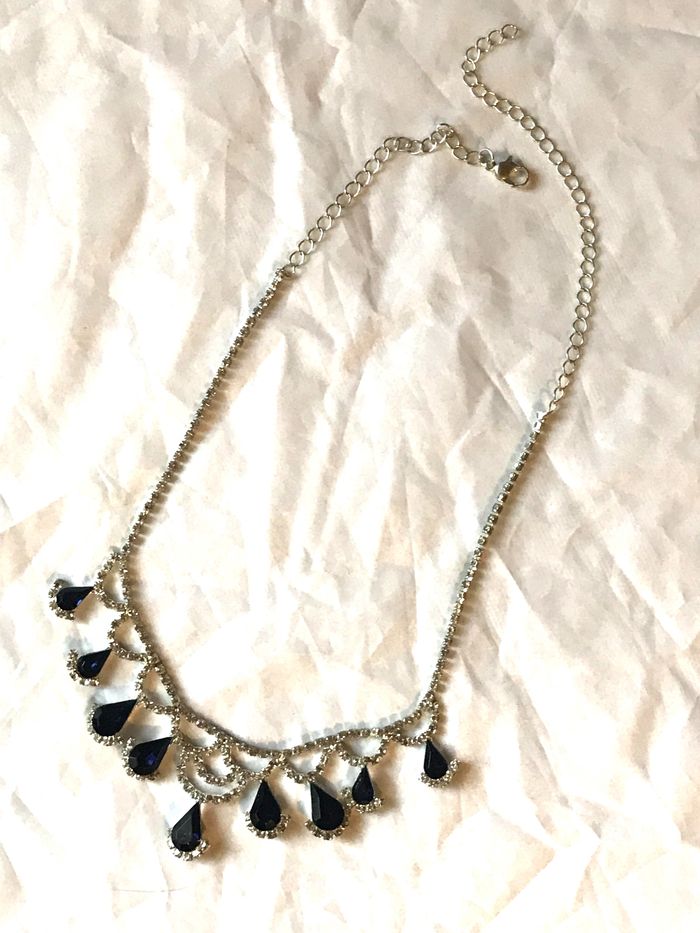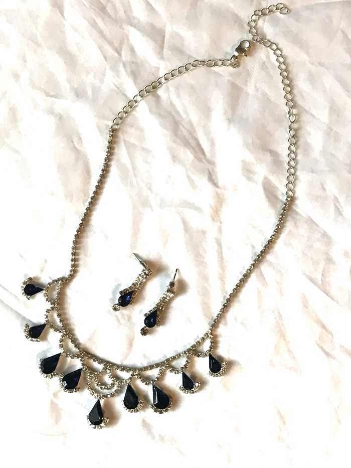 Parure Collier Ras du Cou Tombant Boucles Oreilles Forme Gouttes Bleutées Strass - photo numéro 1