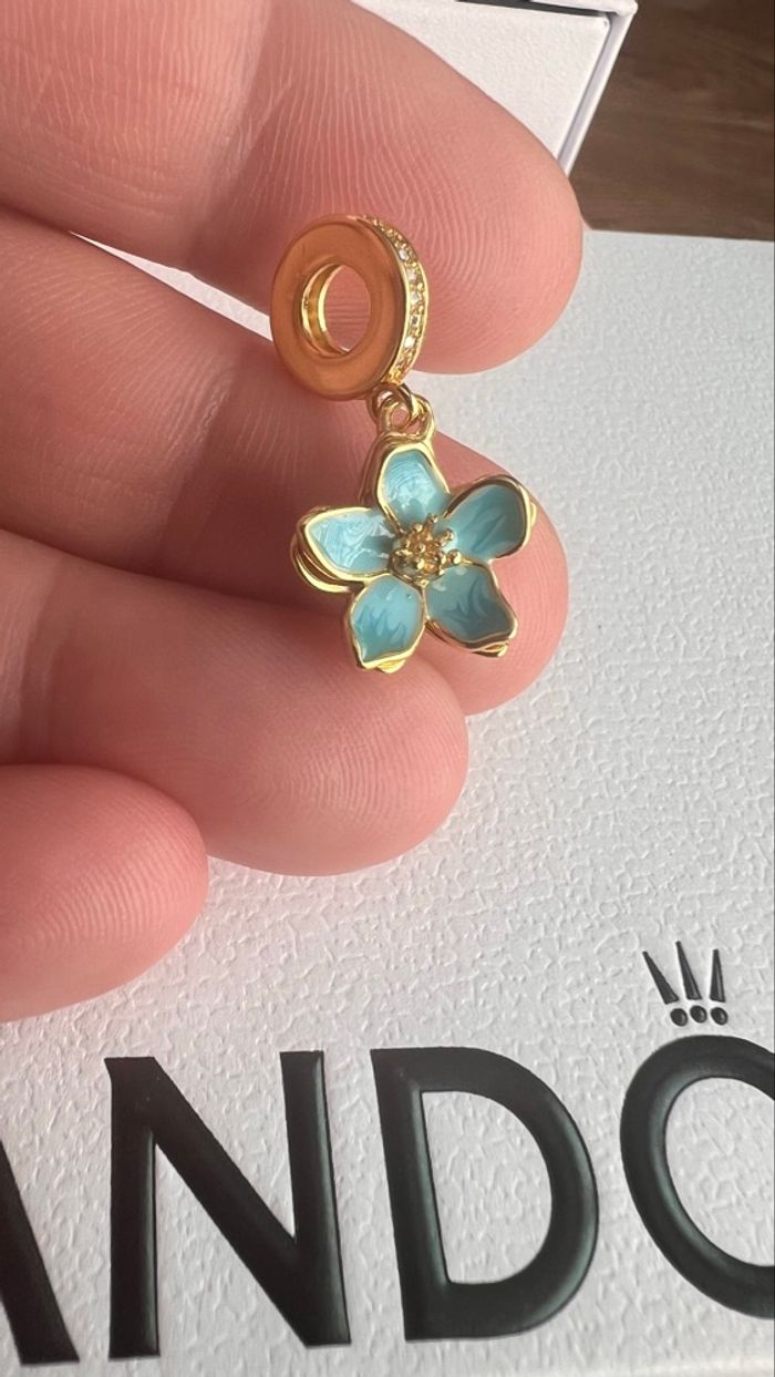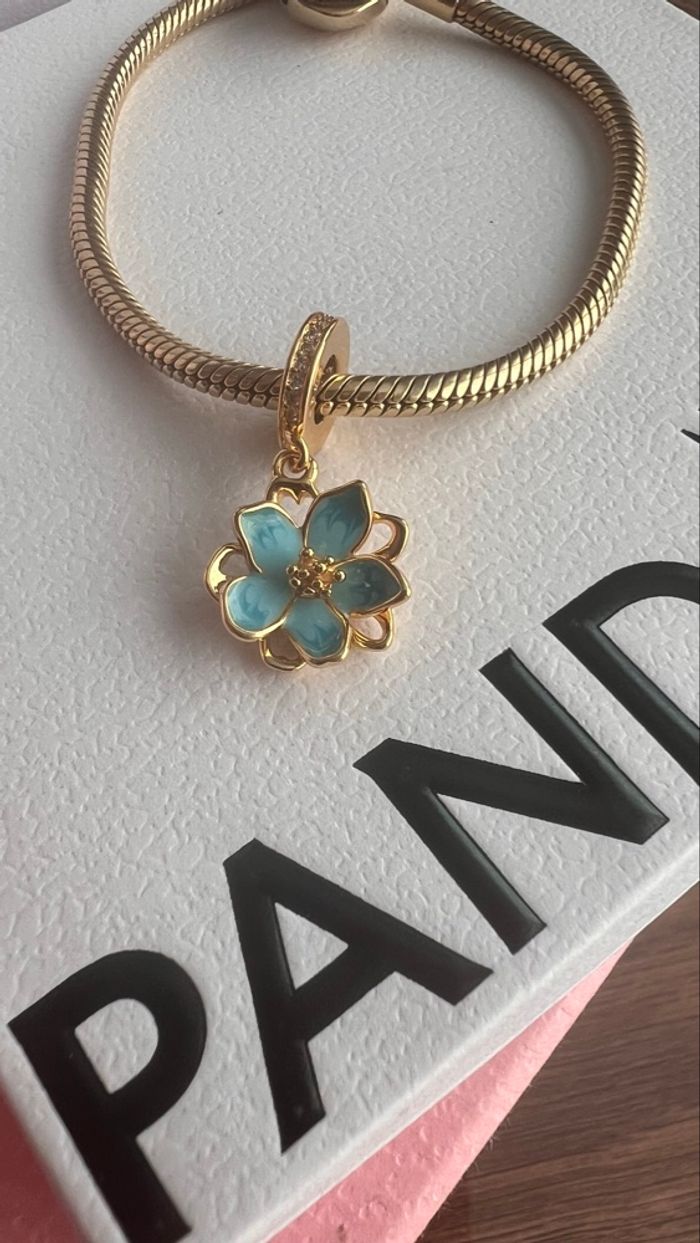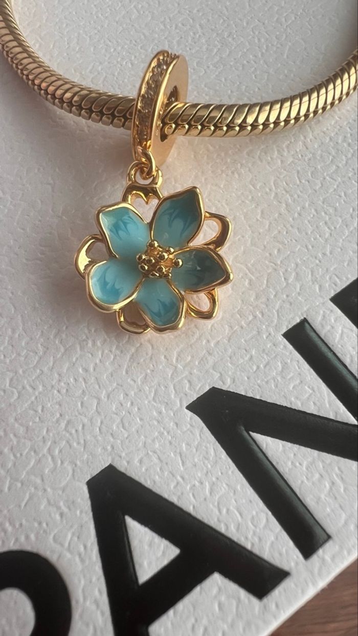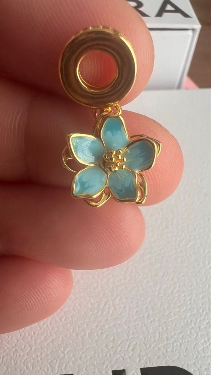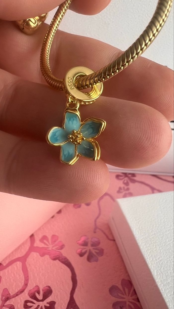Charm jolie fleur de cerisier doré et bleue  - photo numéro 9