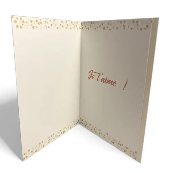 Carte de Saint-Valentin rouge avec le texte « Pour toi, mon cœur » à l’extérieur et « Je t’aime » à l’intérieur. Parfaite pour accompagner un cadeau ou envoyer un mot d’amour, la carte est fournie avec une enveloppe. Dimensions : 17 x 12 cm. Caractéristiques : • Thème : Saint-Valentin • Couleur : rouge • Texte extérieur : « Pour toi, mon cœur » • Texte intérieur : « Je t’aime » • Dimensions : 17 x 12 cm • Fournie avec : enveloppe • Idéal pour : messages d’amour, cartes, cadeaux romantiques • Matériau : papier/carton