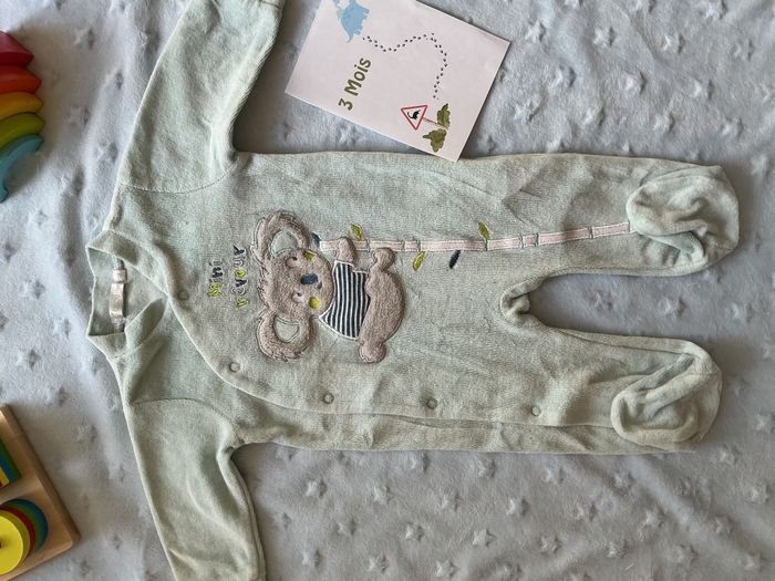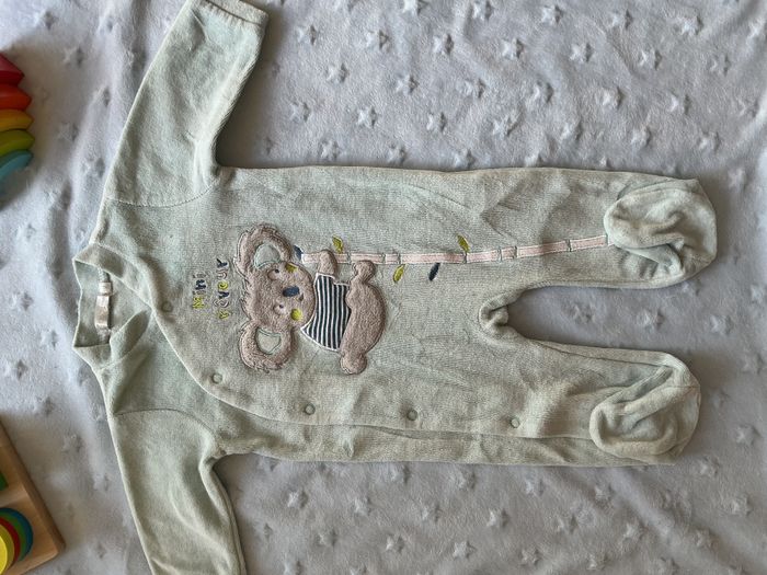 pyjama grenouillère en velours bleu dessin devant 3 mois gémo ouverture devant - photo numéro 2