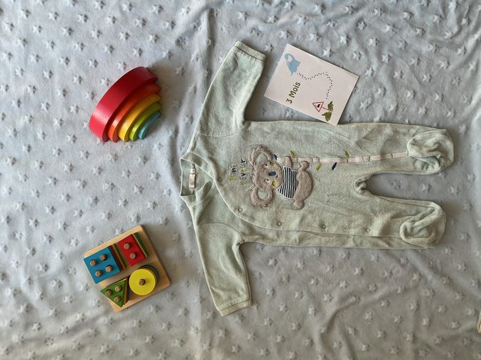 pyjama grenouillère en velours bleu dessin devant 3 mois gémo ouverture devant - photo numéro 1