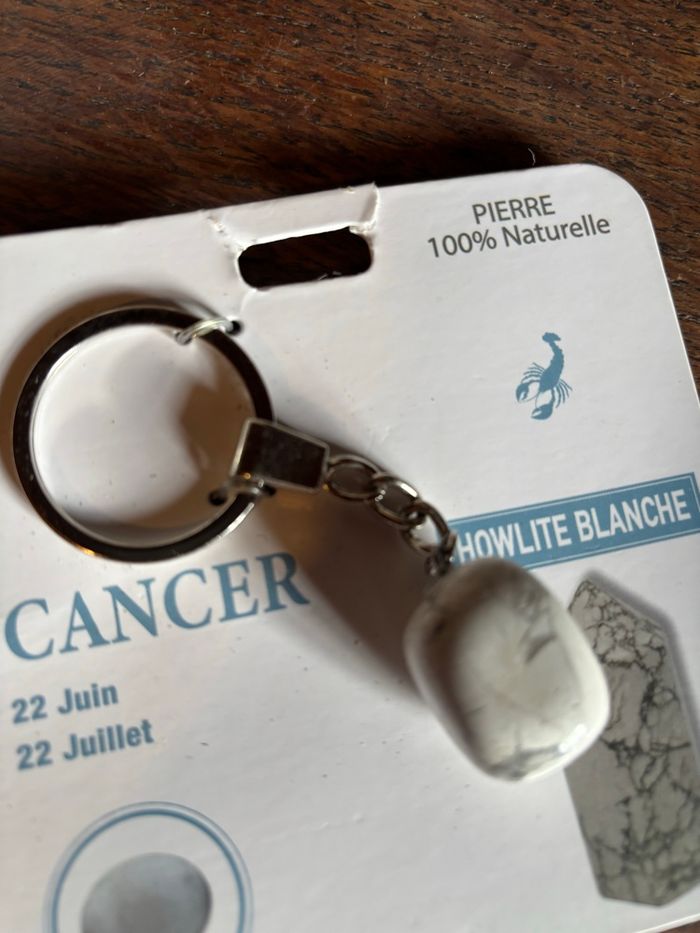 Porte clés En pierre naturelle howlite blanche Signe astrologique cancer Éditions du tonnerre Neuf