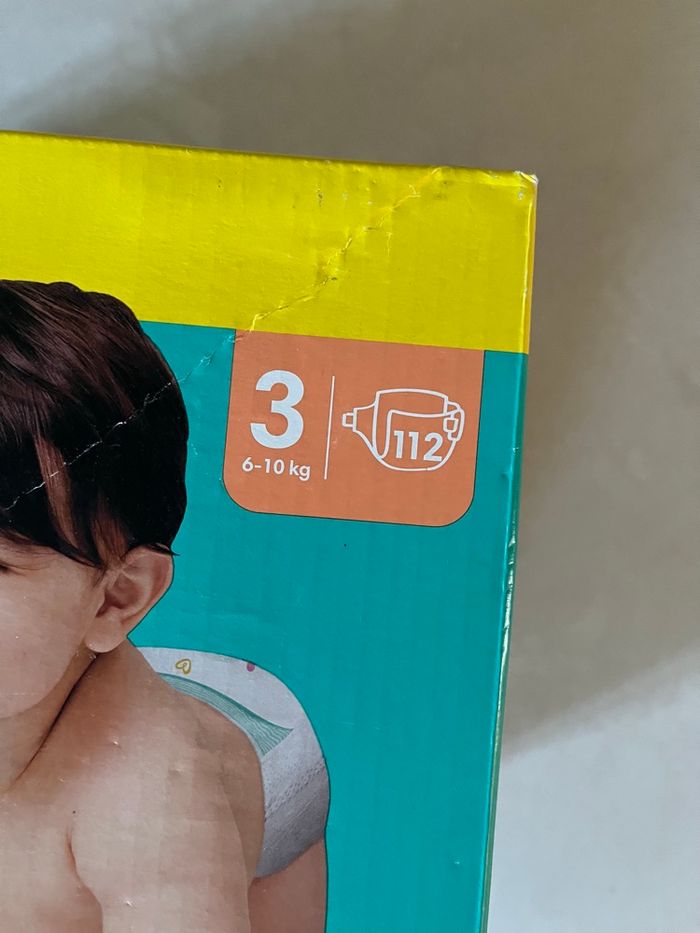 Carton neuf de 112 couches Pampers baby Dry taille 3 Ma fille est passée à la taille 4, d'où la cause de la vente