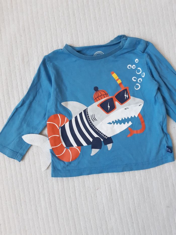 Ensemble haut manches longues requin et jean La Compagnie des Petits 12 mois - photo numéro 2