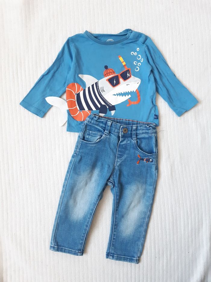 Ensemble haut manches longues requin et jean La Compagnie des Petits 12 mois - photo numéro 1