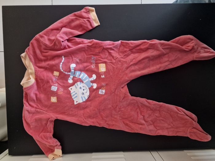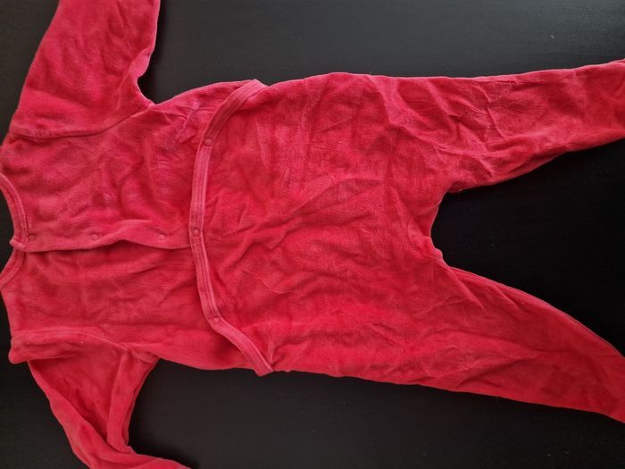 Lot de 2 pyjamas en bon état, + ajout de 1 abîmé en + (dernières photos) Taille 18m + de photos si vous le souhaitez en mp (pas possible d'en mettre + de 10 ...)
