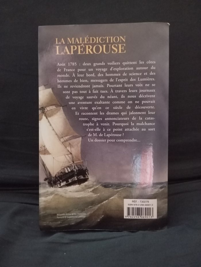 Je vends ce livre "La malédiction Lapérouse" de Dominique Le Brun, qui retrace les traces d'une expédition tragique de 1785 à 2008. - Titre : La malédiction Lapérouse - Auteur : Dominique Le Brun - Année d'édition : 2008 - Genre : Autre Bon état N'hésitez pas à me contacter pour plus d'informations